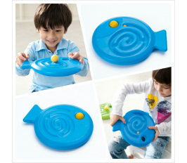 一體兩面的可愛魚設計,兩種玩法,造不同的挑戰與樂趣。迷宮路徑是進階款,畫圓是精密操作的練習,與日後手指拾物、寫字、投擲變化的靈活度有關。
